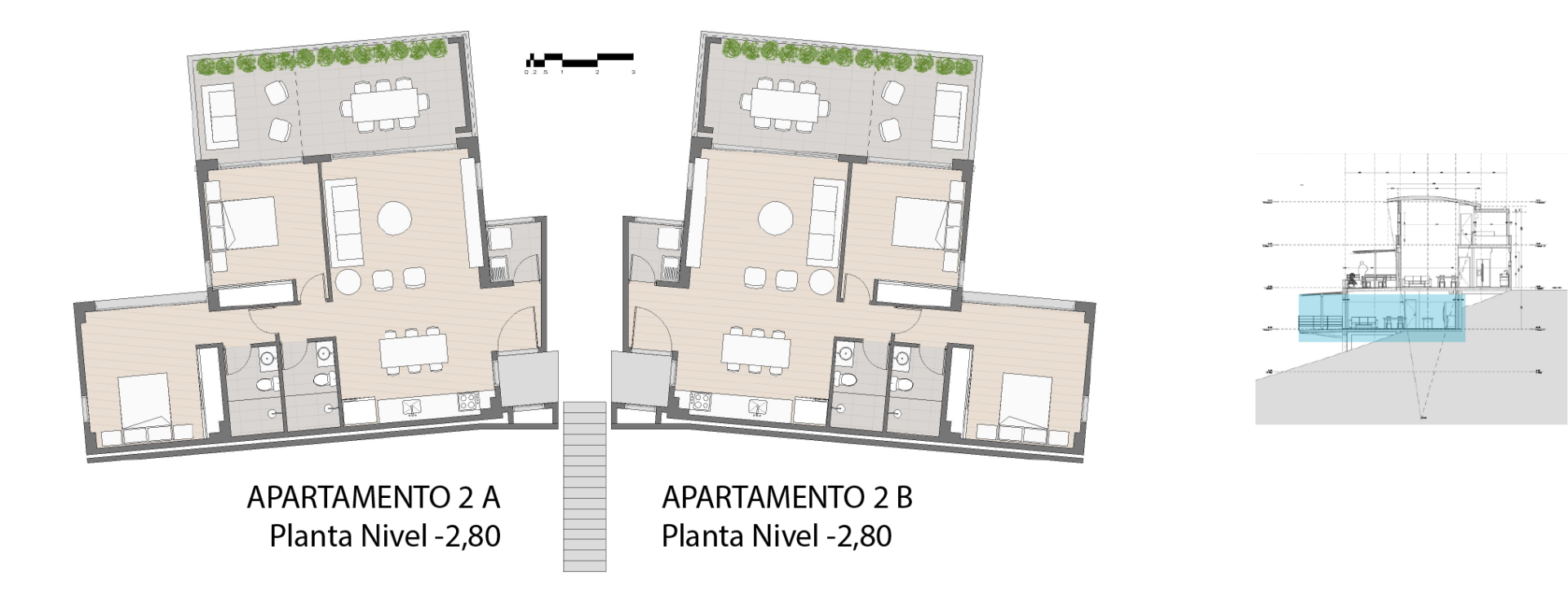 Nivel – 2.80, Área cubierta: 92 m2, Área terraza: 25 m2