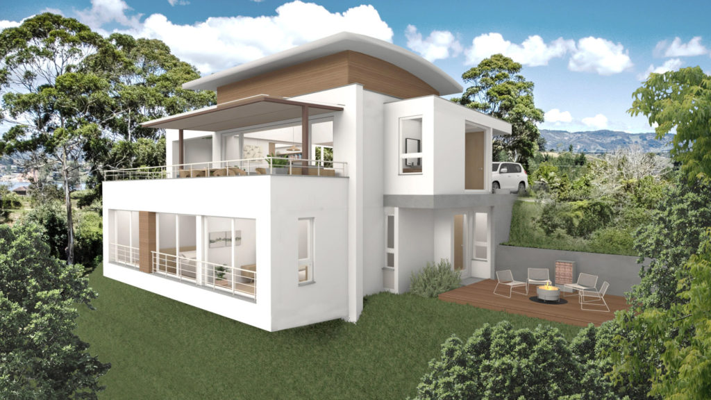 Villas sobre terreno plano o ladera de dos o tres niveles.